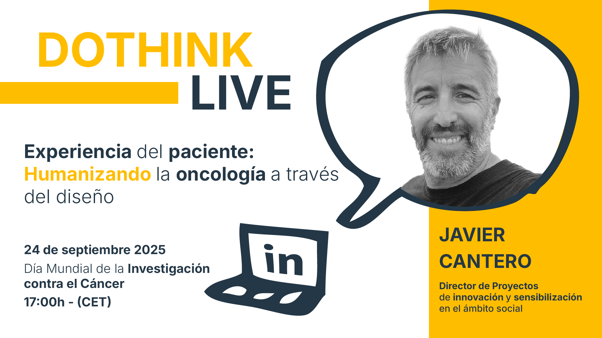El pasado 24 de septiembre, en el marco del Día Mundial de la Investigación contra el Cáncer, tuvimos la oportunidad de conversar con Javier Cantero en un nuevo LinkedIn Live de Dothink Lab. Diseñador, humanista y gestor de proyectos, Javier lleva más de una década dedicando su talento a transformar la experiencia del cáncer a través del diseño. Su recorrido nos recordó algo esencial: la innovación no siempre nace de la tecnología, sino de la escucha y la empatía.